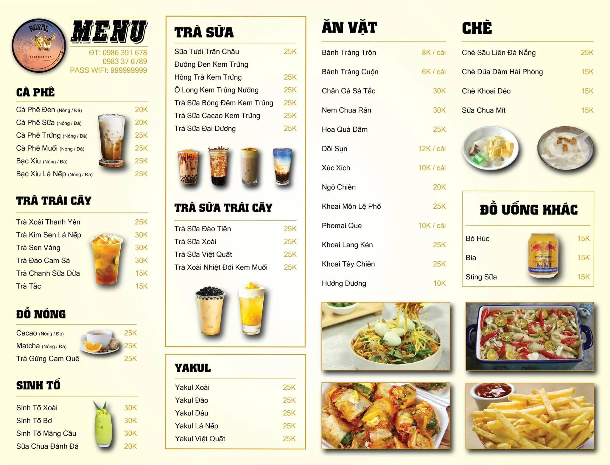 ROYAL Cafe & Tea là một quán cà phê và trà sữa nổi tiếng, thu hút giới trẻ bởi không gian thiết kế đẹp mắt, sang chảnh cùng menu đồ uống đa dạng và giá cả phải chăng.