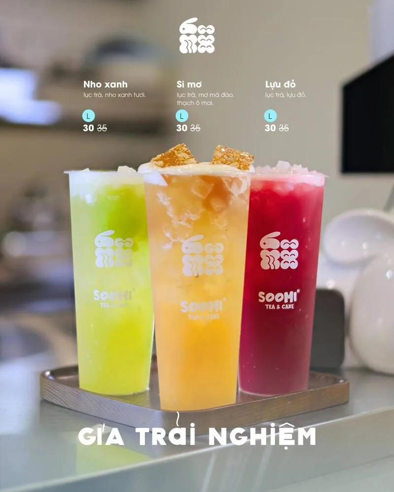 Soomi Tea & Cake (Trà sữa Soomi) là một thương hiệu trà sữa "mới toanh" cập bến Vinh, gây ấn tượng mạnh với không gian mang tông màu xanh "cưng xỉu". Quán nhanh chóng được yêu thích nhờ chất lượng đồ uống tốt, sử dụng nguyên liệu "xịn" và đặc biệt là các loại trân châu và kem trứng được đánh giá cao.