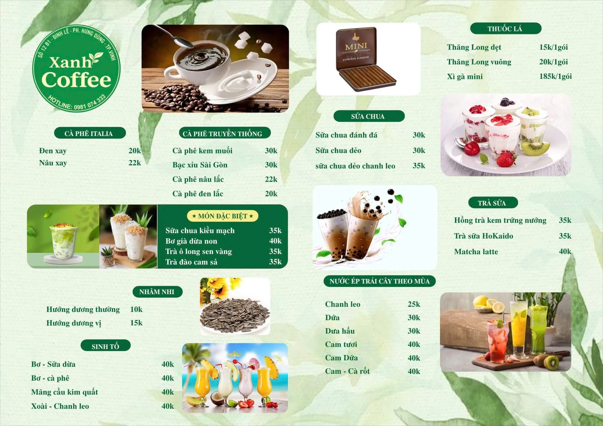 Xanh Coffee tại ngõ B1 đường Đinh Lễ là một quán cà phê với không gian xanh yên bình, nhẹ nhàng, phù hợp để thư giãn và gặp gỡ bạn bè. Quán được nhiều người biết đến nhờ không gian trang trí đẹp mắt và đồ uống chất lượng