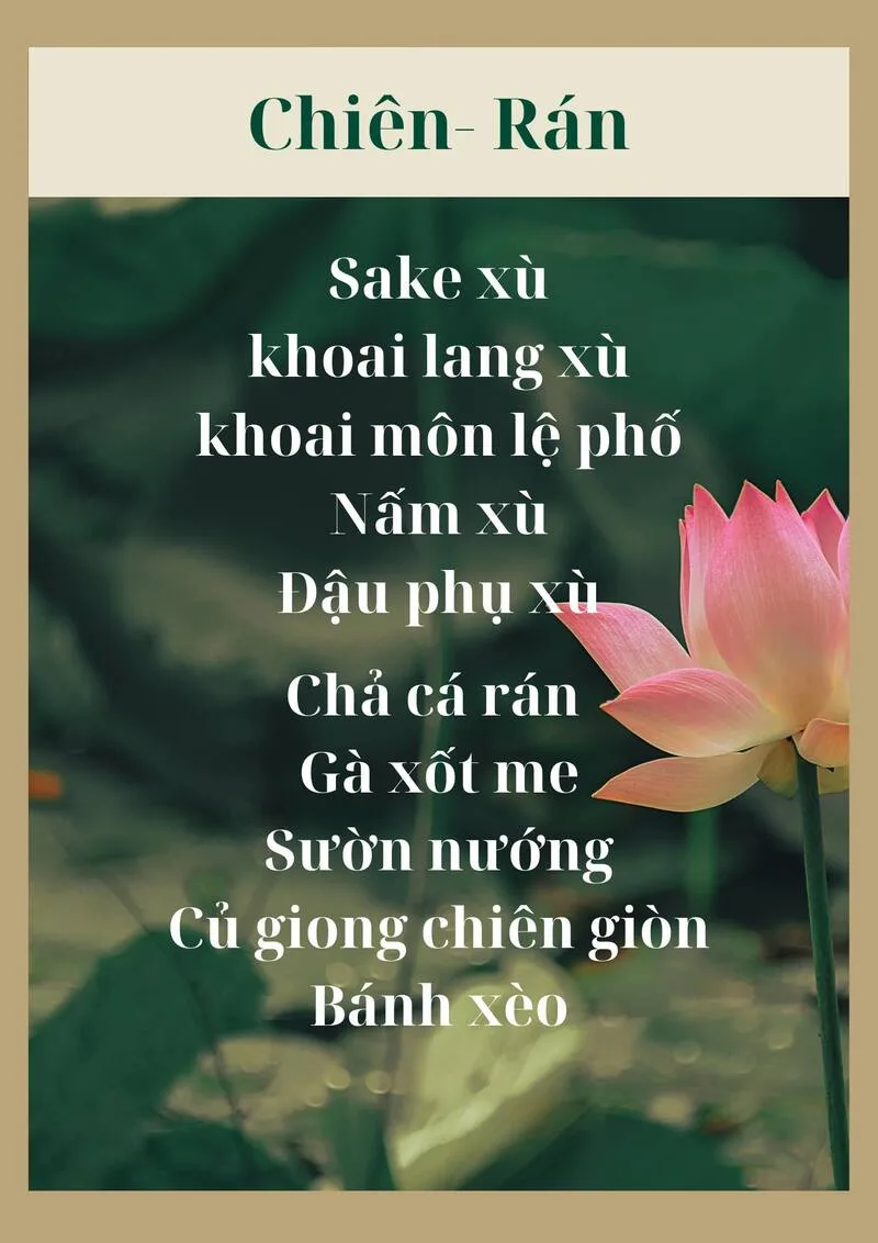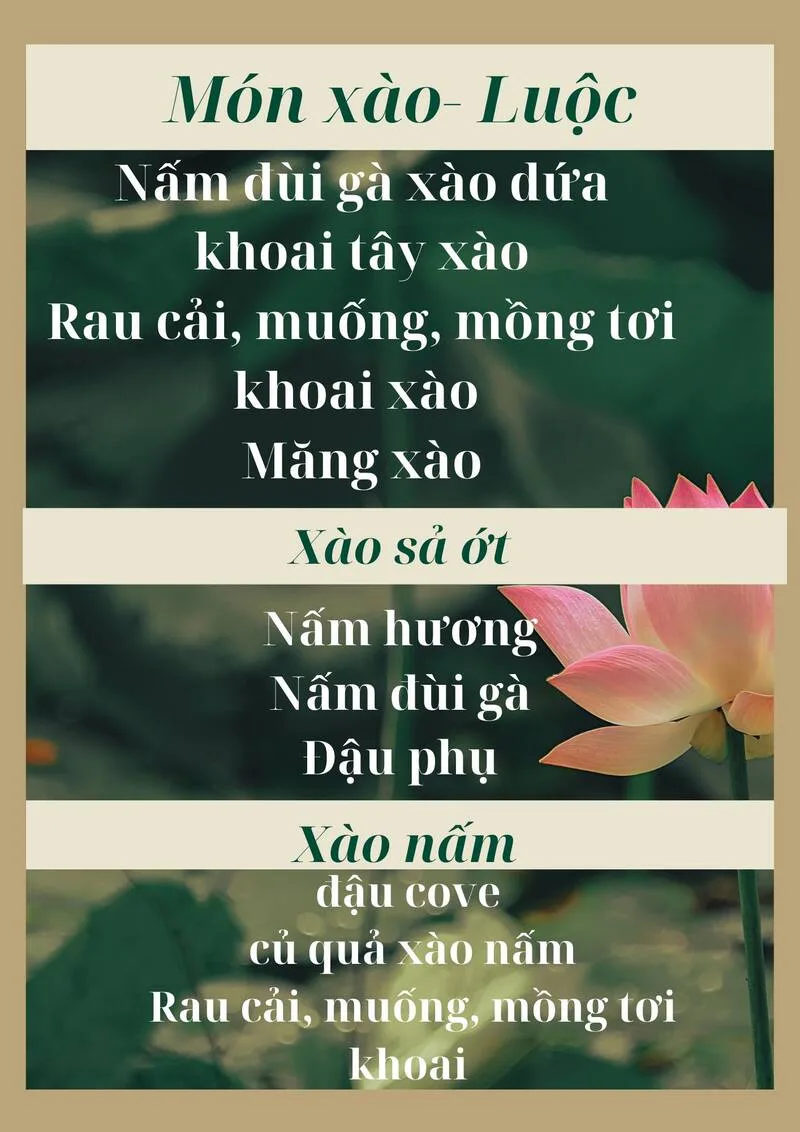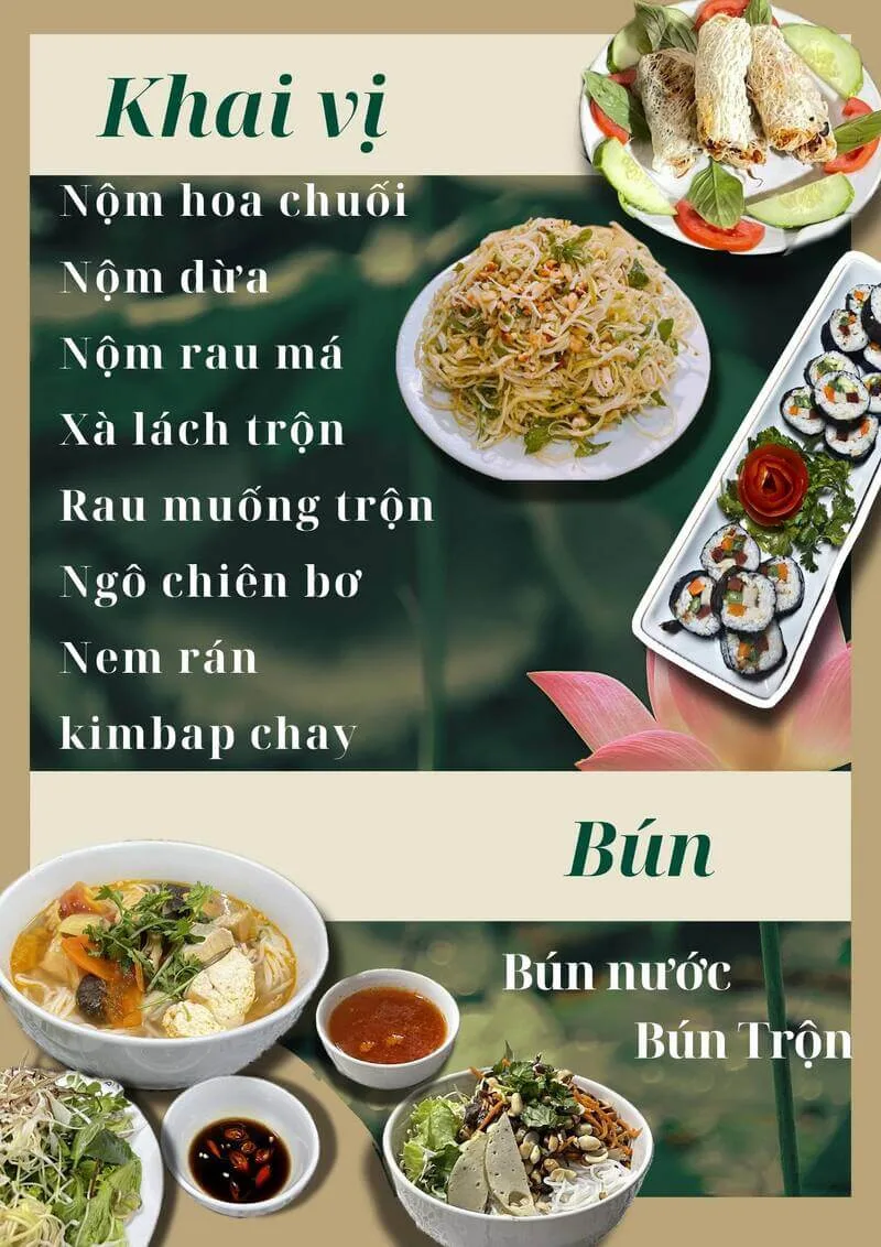 Thực đơn của quán tập trung vào các món ăn quen thuộc trong bữa cơm chay của người Việt, được chế biến khéo léo và đậm đà: