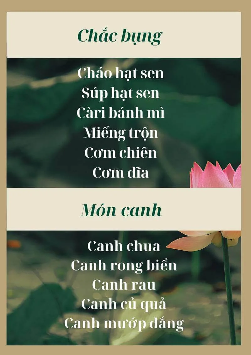 1. Loại hình: Quán cơm chay bình dân/gia đình chuyên về cơm chay và các món chay Việt Nam truyền thống, dân dã.