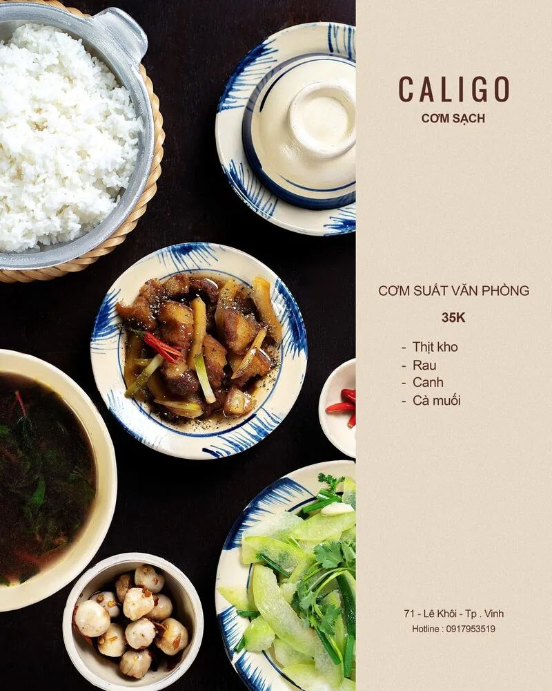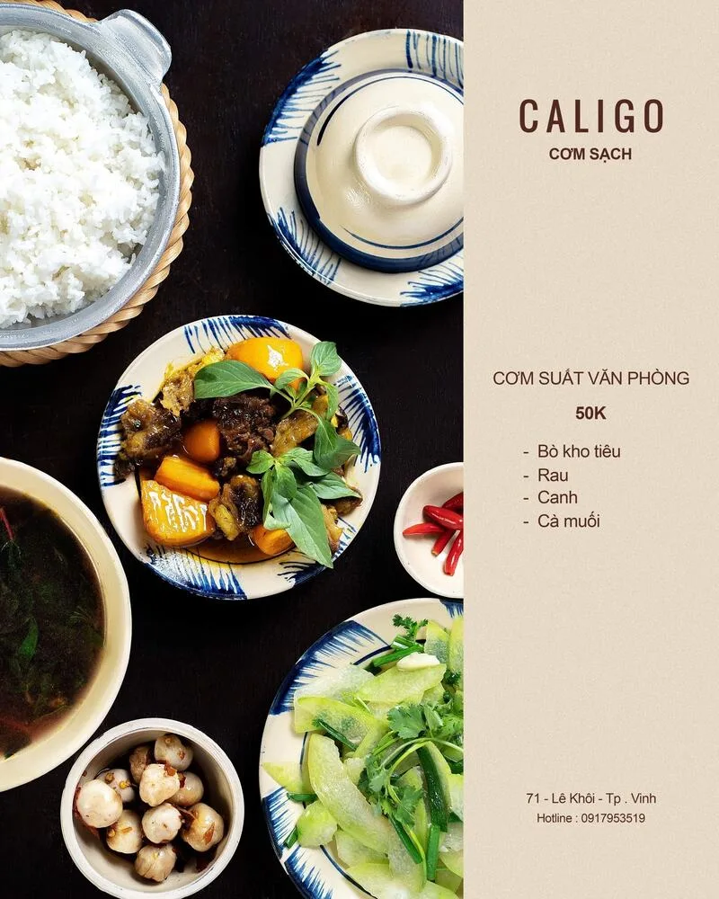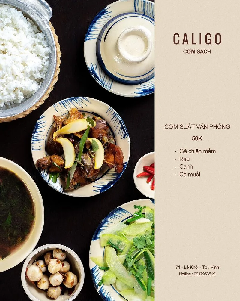 Với sự kết hợp tinh tế giữa những bữa cơm nhà sạch sẽ và món lẩu gà lá é đặc sản, Caligo tại 71 Lê Khôi là một điểm đến ẩm thực độc đáo. Dù bạn cần một bữa trưa nhanh gọn hay một buổi tối quây quần ấm áp, không gian phố cổ và những món ăn chất lượng của quán chắc chắn sẽ làm bạn hài lòng.