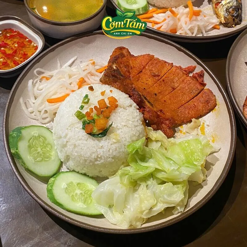 Cơm Tấm Anh Chị Em là một trong những quán cơm tấm nổi bật tại TP. Vinh, được nhiều thực khách yêu thích nhờ hương vị đậm đà và chất lượng ổn định. Cơm tơi mềm, sườn nướng thơm phức, chả trứng, trứng ốp, bì và mỡ hành hòa quyện cùng nước mắm pha khéo – tất cả tạo nên một đĩa cơm đầy đặn, tròn vị.