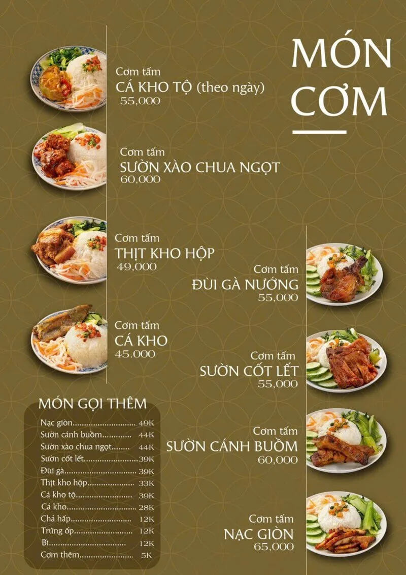 2. Món đặc sắc: Cơm tấm sườn bì chả, cơm đùi gà chiên mắm tỏi, cá bống lắc mắm tiêu và bò xào nấm chảo...