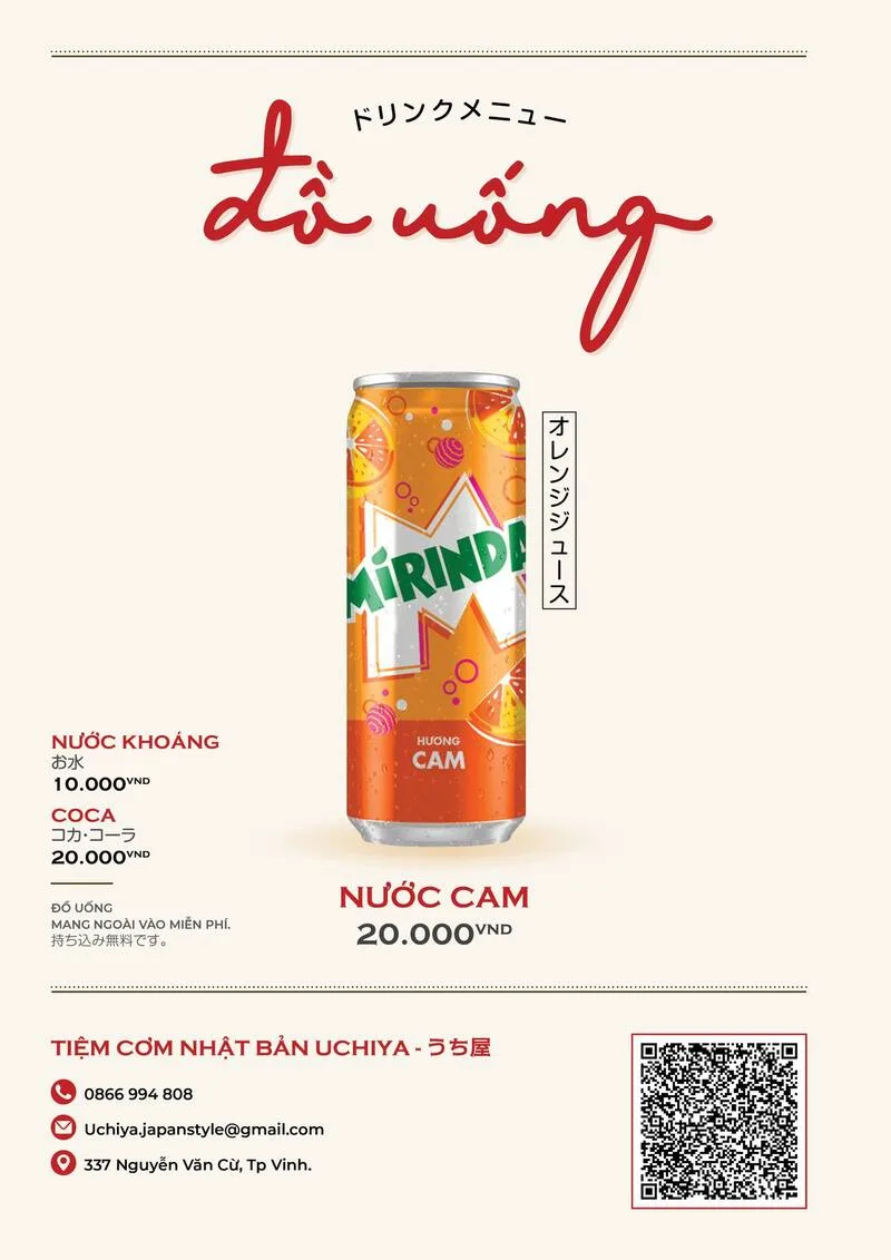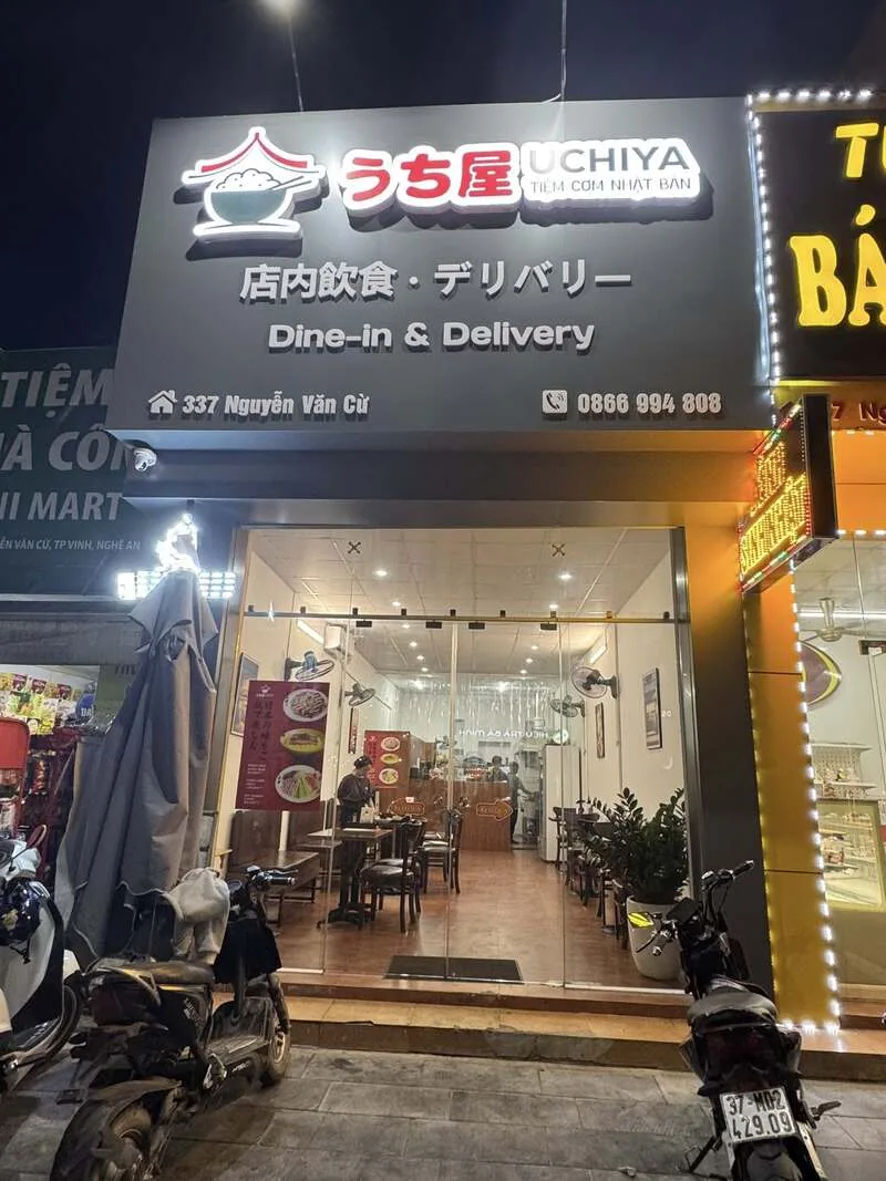 Tiệm Cơm Nhật Bản Uchiya mang đến cho thực khách Vinh những món ăn Nhật Bản ấm cúng và chuẩn vị. Quán tập trung vào các món ăn nóng quen thuộc trong bữa cơm của người Nhật như Cơm cà ri, Gyudon (cơm bò), Oyakodon (cơm gà trứng)... Với hương vị vừa vặn, giá cả hợp lý và dịch vụ giao hàng mạnh mẽ, đây là điểm đến lý tưởng cho một bữa trưa đổi vị.