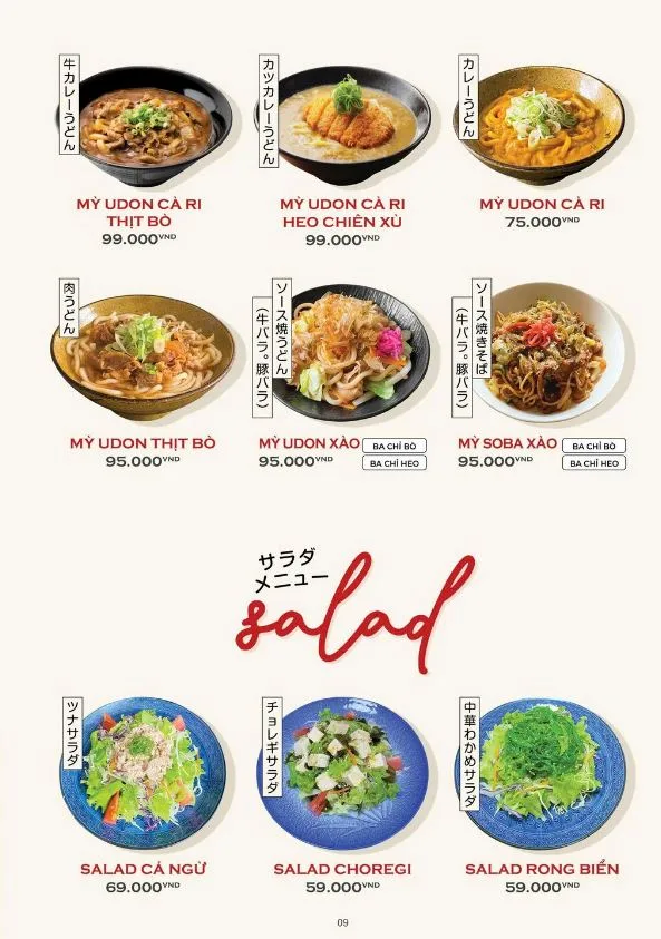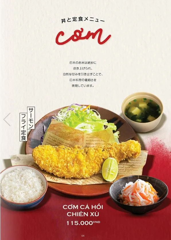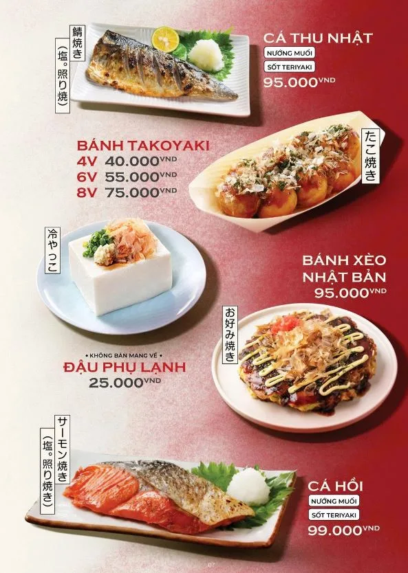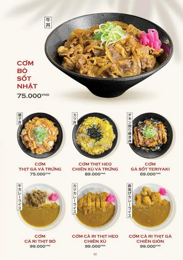 Thực đơn của quán là một danh sách các món ăn nóng hổi, đậm chất Nhật Bản: