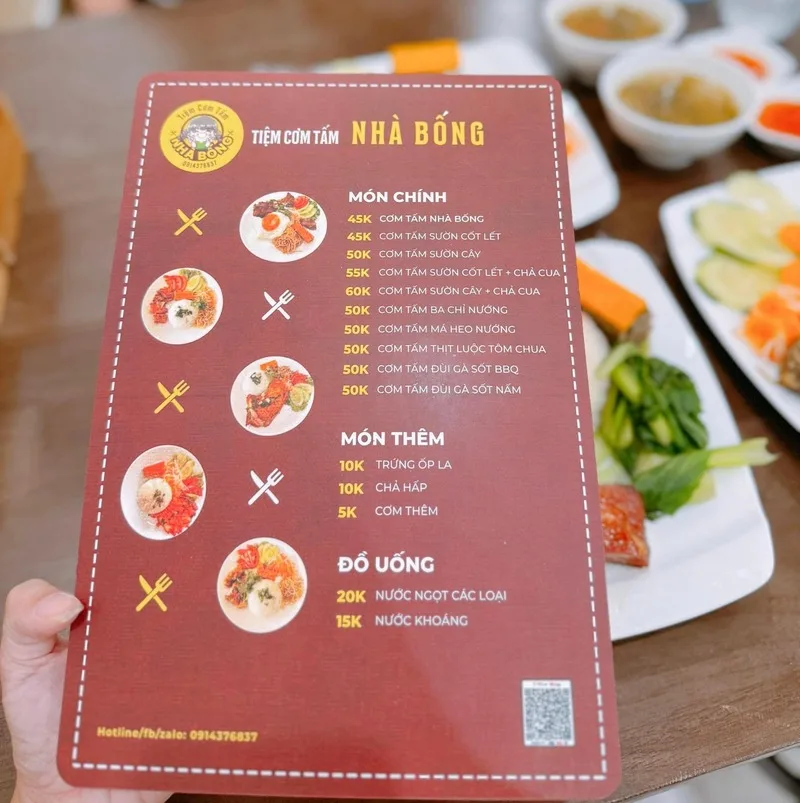 Thực đơn của quán tập trung vào các món cơm tấm đặc trưng: