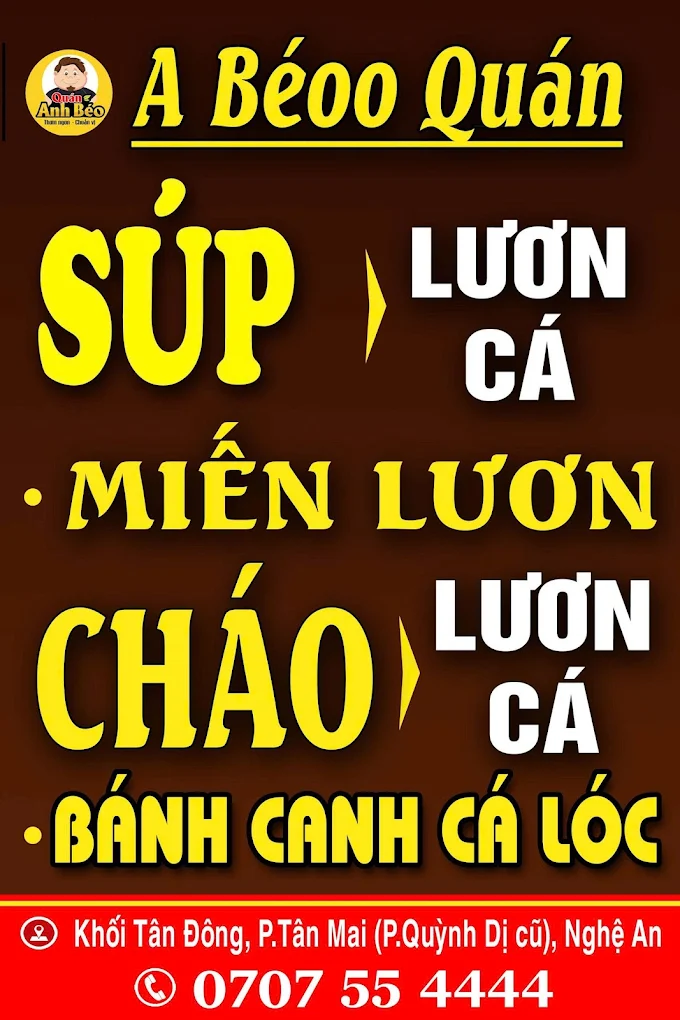 A Béoo Quán là một địa chỉ ăn uống được nhiều người dân địa phương tại Hoàng Mai, Nghệ An tin tưởng và yêu thích. Với cam kết mang đến những món ăn tươi ngon, chất lượng cùng không gian sạch sẽ, thoáng mát, A Béoo Quán đã xây dựng được uy tín và nhận được nhiều đánh giá tích cực từ khách hàng. Quán là lựa chọn lý tưởng cho những bữa ăn bình dân nhưng chất lượng, từ bữa sáng cho đến bữa khuya.