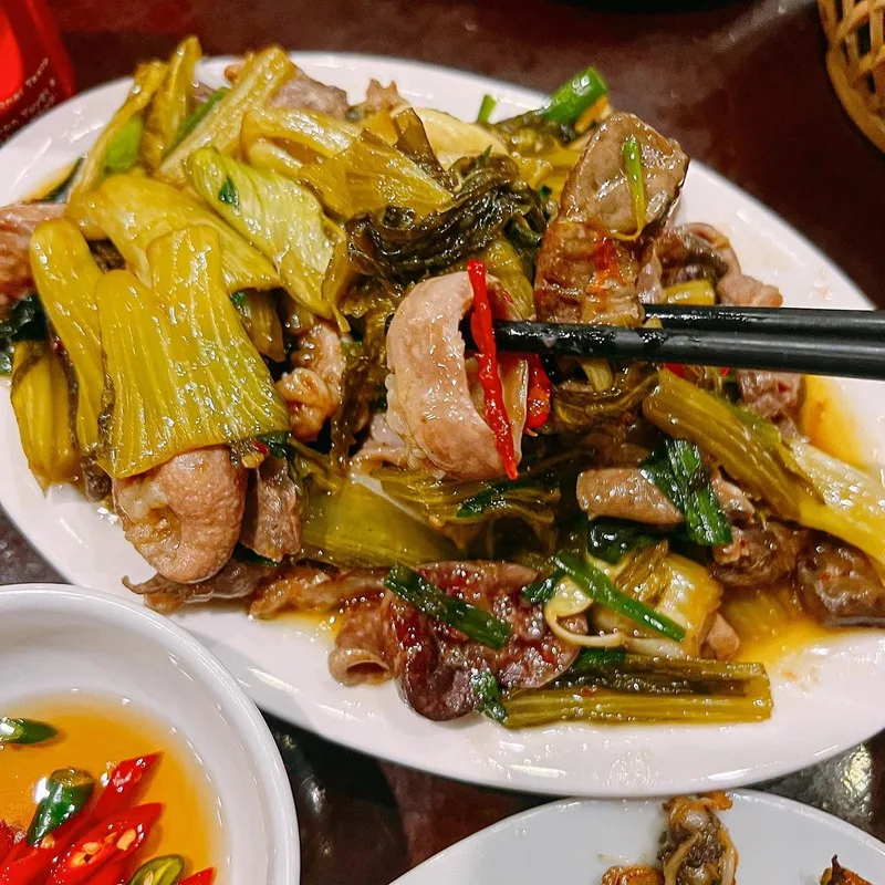 Cheo Mén Quán được biết đến với những món lẩu né nóng hổi, độc đáo. Gần đây, quán còn gây ấn tượng với món thịt ba chỉ nướng chum, được nướng trong chum đất để giữ trọn hương vị, thịt giòn bì, mềm ngọt và chấm kèm nước chấm đặc biệt.