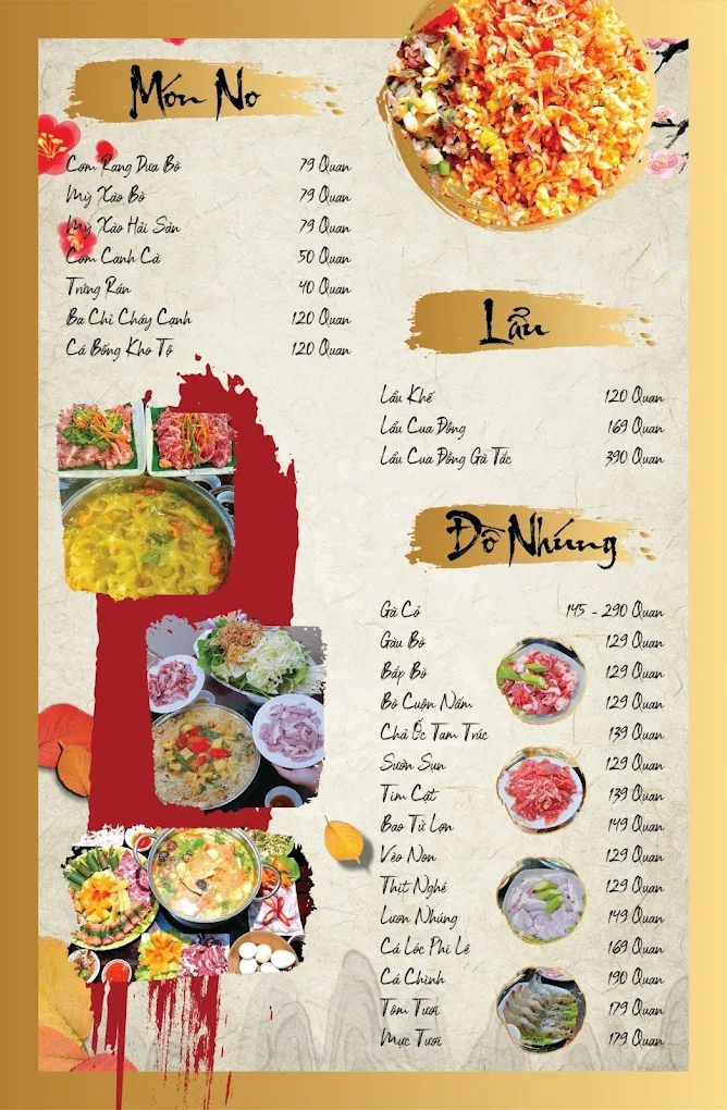 Thực đơn của quán cực kỳ đa dạng với hàng trăm món ăn, nổi bật nhất là các món được thực khách khen ngợi: