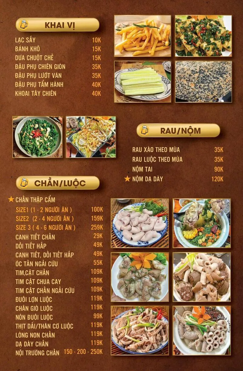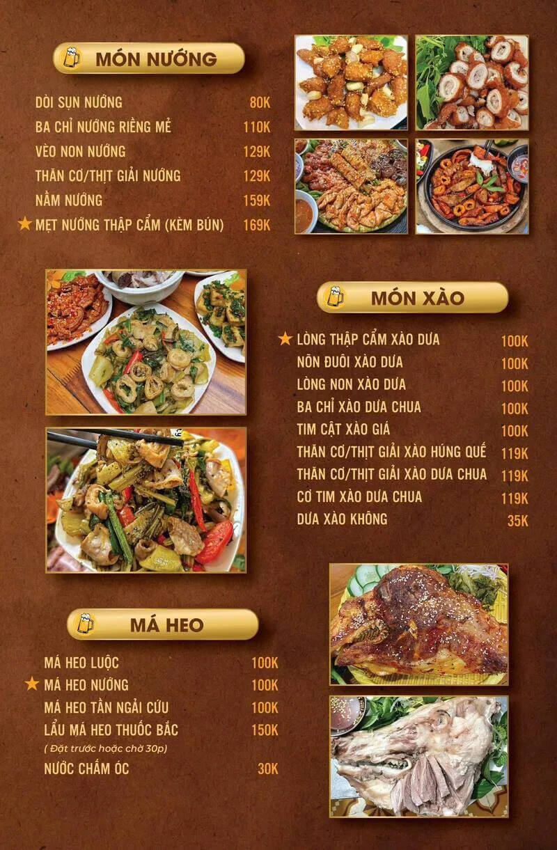 Thực đơn của quán rất đa dạng, từ chần, luộc, xào, chiên đến nướng và lẩu: