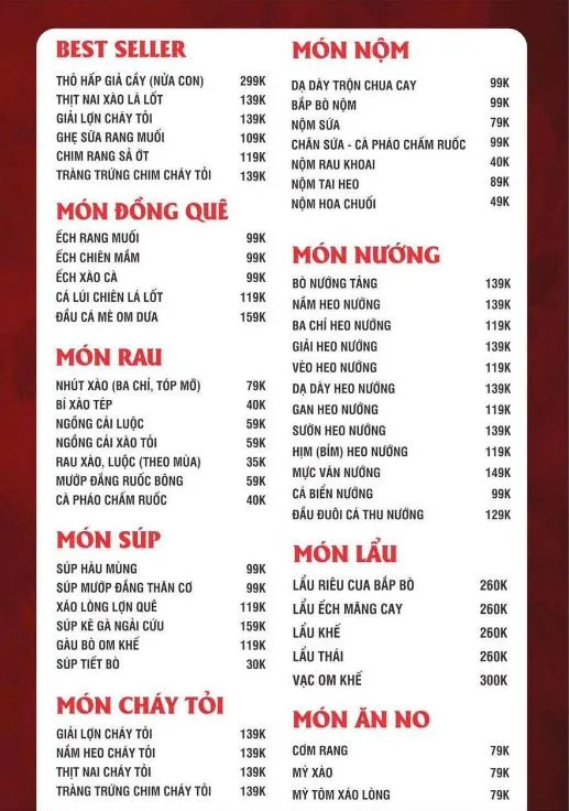 - Lẩu và nướng: Có phục vụ lẩu và nướng.