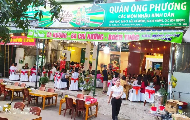 Quán Ông Phương là một địa chỉ quen thuộc của dân nhậu tại thành phố Vinh. Quán nổi tiếng với các món nhậu được chế biến ngon, đậm đà với mức giá phải chăng. Với không gian bình dân, ấm cúng, quán là lựa chọn lý tưởng cho những buổi tụ tập, lai rai cùng bạn bè.