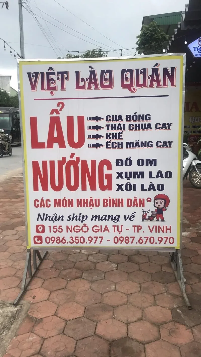 Với thực đơn các món nhậu Việt - Lào đa dạng, giá cả cực kỳ bình dân và một không khí sôi động, Việt Lào Quán là một lựa chọn hoàn hảo cho mọi "kèo" nhậu. Nếu bạn và hội bạn đang tìm một nơi có thể ăn uống no nê, "bổ nghiêng bổ ngả" mà không quá lo về giá, hãy lên kèo ngay tại 55 Ngô Gia Tự.