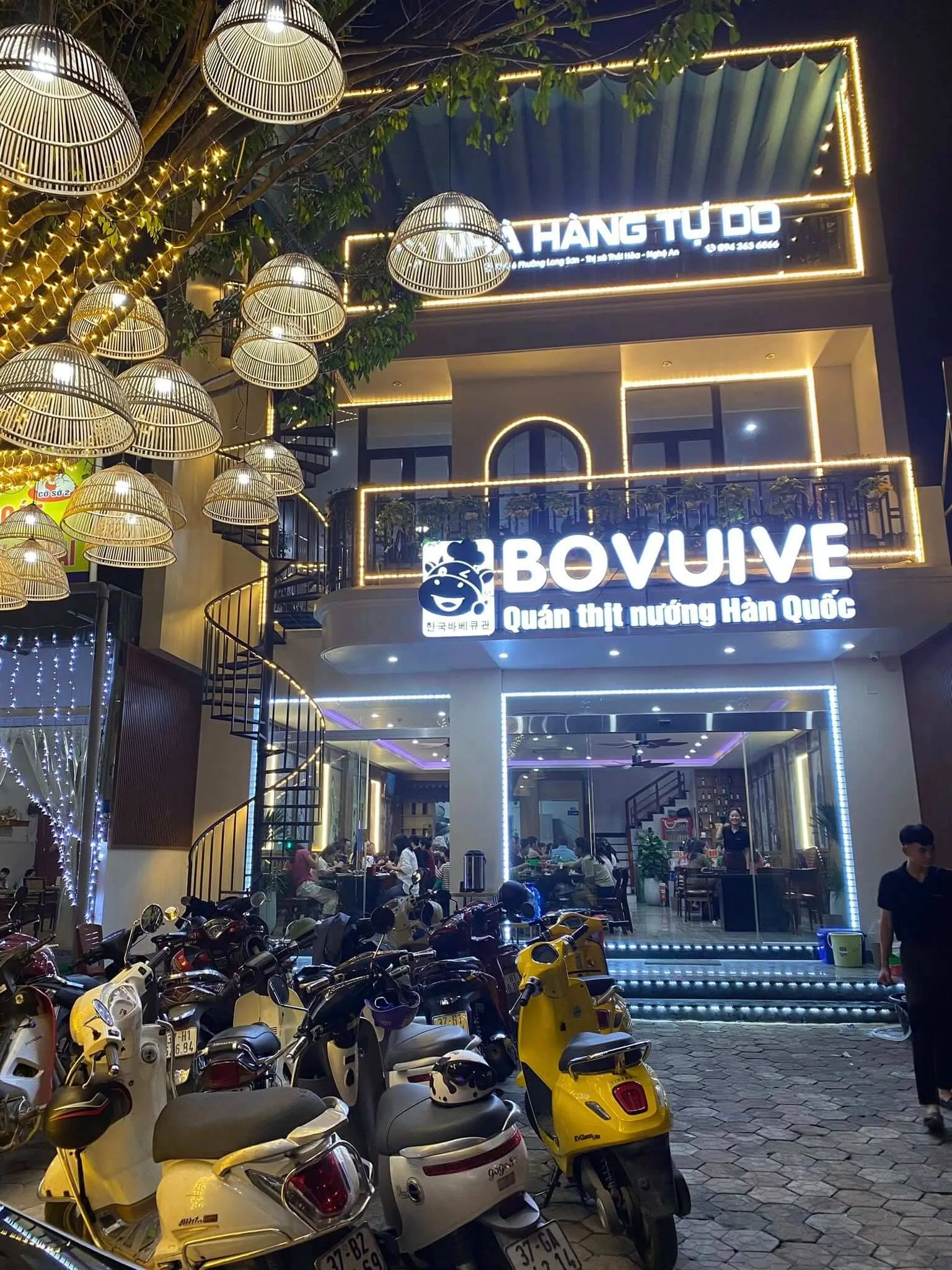 Nhà Hàng Bò Vui Vẻ là một nhà hàng đa tầng tại Thái Hoà, thuộc hệ thống Công Phú Restaurant. Với tầng 1 phục vụ lẩu nướng phong cách Hàn Quốc và các tầng trên chuyên món ăn tự do, sự kiện, tiệc, nhà hàng mang đến trải nghiệm ẩm thực đa dạng. Đặc biệt, các món nướng và lẩu được chế biến từ nguyên liệu tươi ngon, được nhiều khách hàng đánh giá cao.