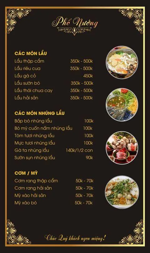 Phố nướng - Lẩu nướng than hoa là một quán ăn quen thuộc tại thành phố Vinh, chuyên phục vụ các món lẩu và nướng. Với không gian ấm cúng, thoáng đãng và thực đơn đa dạng, đây là địa điểm lý tưởng cho những buổi tụ tập gia đình, bạn bè để thưởng thức những món ăn ngon.