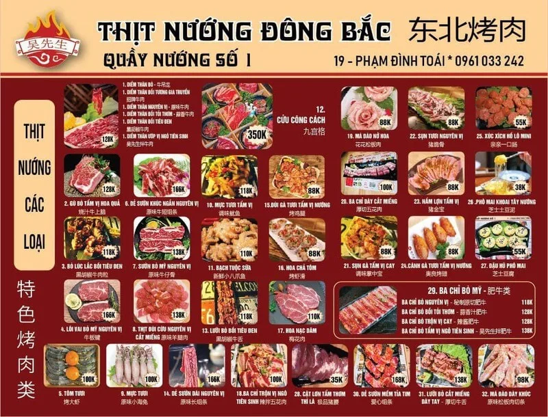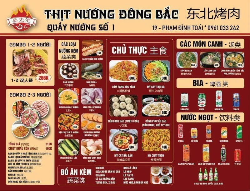 Với hương vị nướng chuẩn vị Trung Hoa, cam kết về độ tươi ngon của nguyên liệu và đặc biệt là một không gian không ám mùi, Thịt nướng Đông Bắc đã trở thành một điểm đến độc đáo và chất lượng. Nếu bạn muốn đổi gió với một phong cách nướng mới lạ, đây chắc chắn là một địa chỉ không thể bỏ qua.