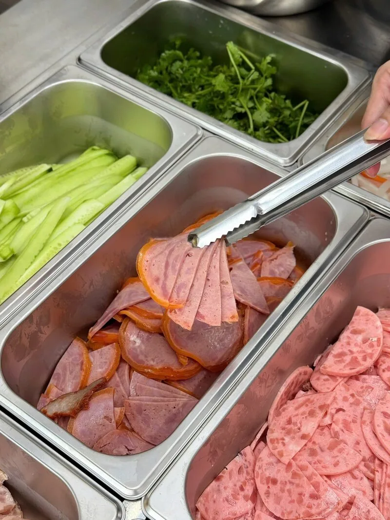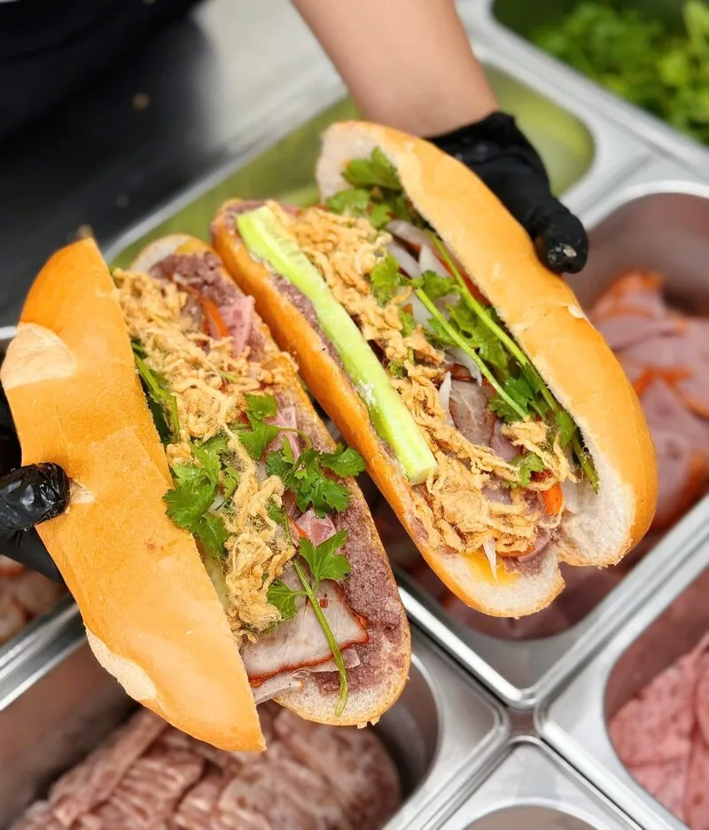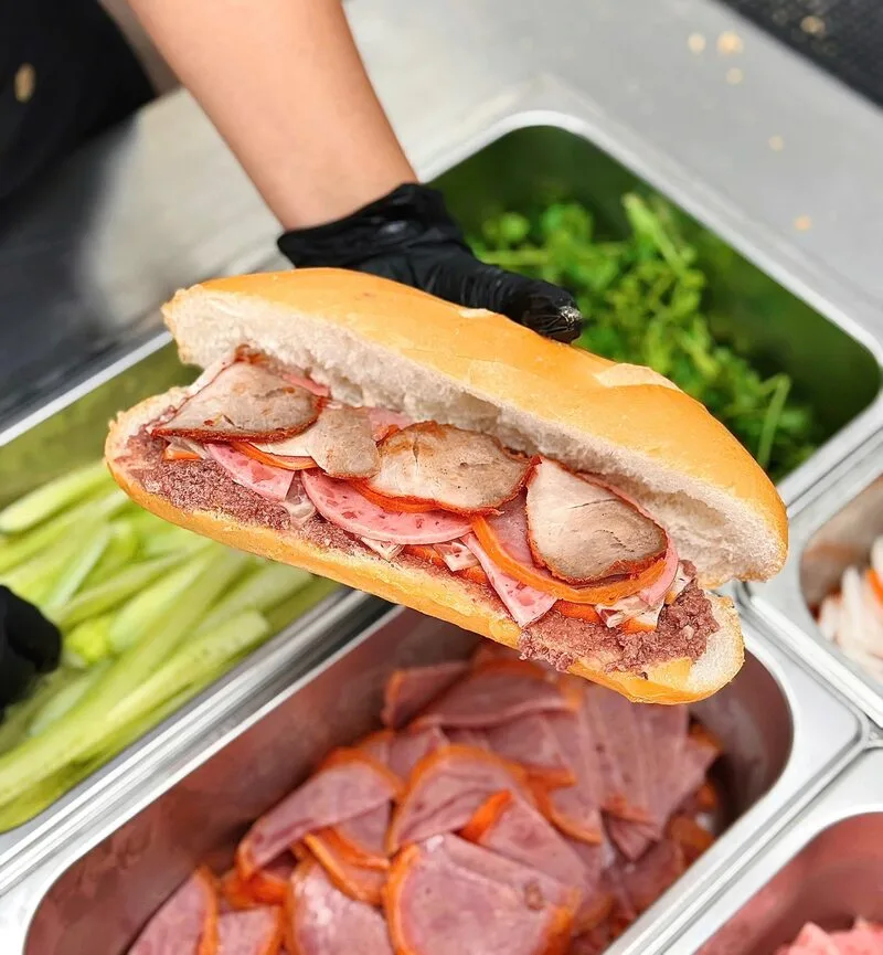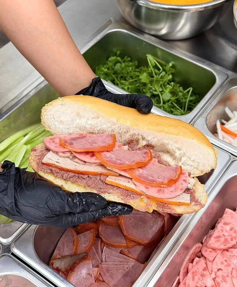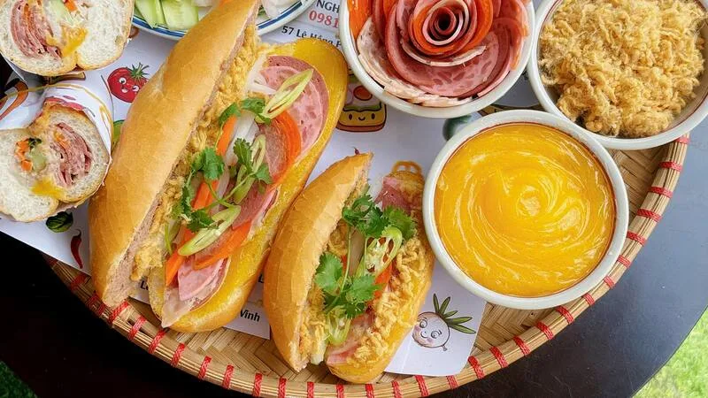 2. Món đặc sắc: Bánh mì với đầy đủ các loại topping như thịt, chả lụa, rau thơm, dưa chuột…