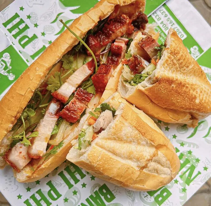 Là một thương hiệu bánh mì độc đáo, Quán bánh mì heo quay lu Nhi Phi gây ấn tượng mạnh với món bánh mì heo quay được nướng bằng lu. Kỹ thuật này giúp miếng thịt có lớp da vàng giòn rụm trong khi phần thịt bên trong vẫn giữ được độ mềm mọng. Kết hợp cùng nước sốt nhà làm đậm đà, đây là một lựa chọn quà xế chiều cực kỳ hấp dẫn.