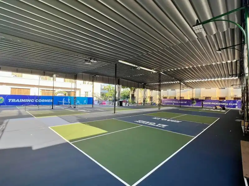 Mặt sân tại đây được đầu tư tiêu chuẩn PPA với 8 lớp sơn, mang lại trải nghiệm thi đấu đỉnh cao. Không gian nghỉ ngơi rộng rãi với trang thiết bị chất lượng cao, cùng dịch vụ huấn luyện chuyên nghiệp biến nơi đây thành điểm hẹn lý tưởng để kết nối cộng đồng.