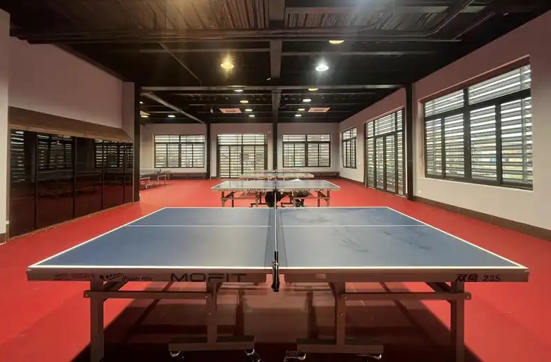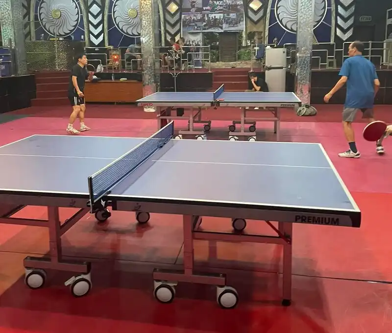 Sân bố trí 4 bàn thi đấu chất lượng cao trên nền trải thảm chống trơn trượt, giúp di chuyển linh hoạt và an toàn. Ngoài ra còn có các bàn phụ ở khu vực ngoài để tập luyện cực kỳ tiện lợi. Đặc biệt khu vực khán đài cao giúp theo dõi toàn cảnh các trận đấu hấp dẫn.
