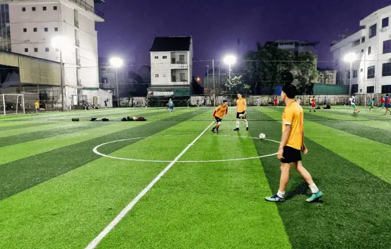Quy mô gồm 2 sân 7 người với chất lượng mặt cỏ tốt, độ lún vừa phải giúp hạn chế chấn thương khi tranh chấp. Hệ thống chiếu sáng được đầu tư bài bản với đèn chất lượng cao, phục vụ hoàn hảo cho nhu cầu đá bóng xả hơi sau giờ làm việc của dân văn phòng.