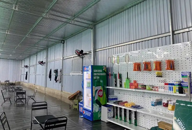 Tiện ích sân bãi được đánh giá cao với bãi đỗ xe ô tô rộng rãi, căng tin phục vụ đa dạng nước uống, đồ ăn nhẹ và trà đá miễn phí, giúp các lông thủ phục hồi năng lượng ngay sau trận đấu.