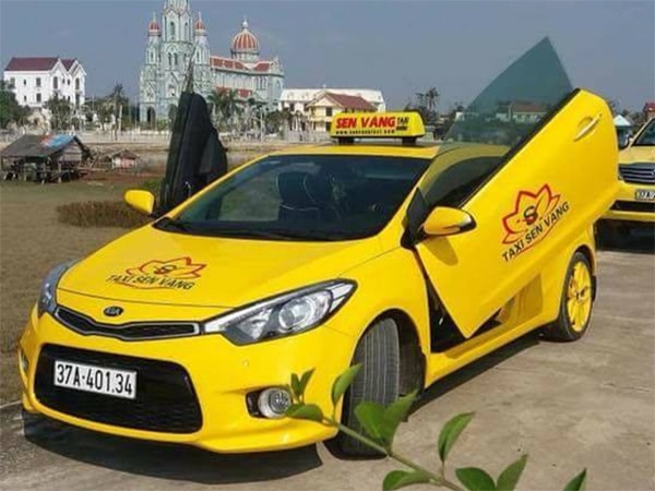 2. Đặc điểm nhận diện: Là hãng xe địa phương, thường không có màu sơn đồng phục cố định. Xe sẽ được dán logo "Taxi Sen Vàng" hoặc có biển hiệu trên mui xe.